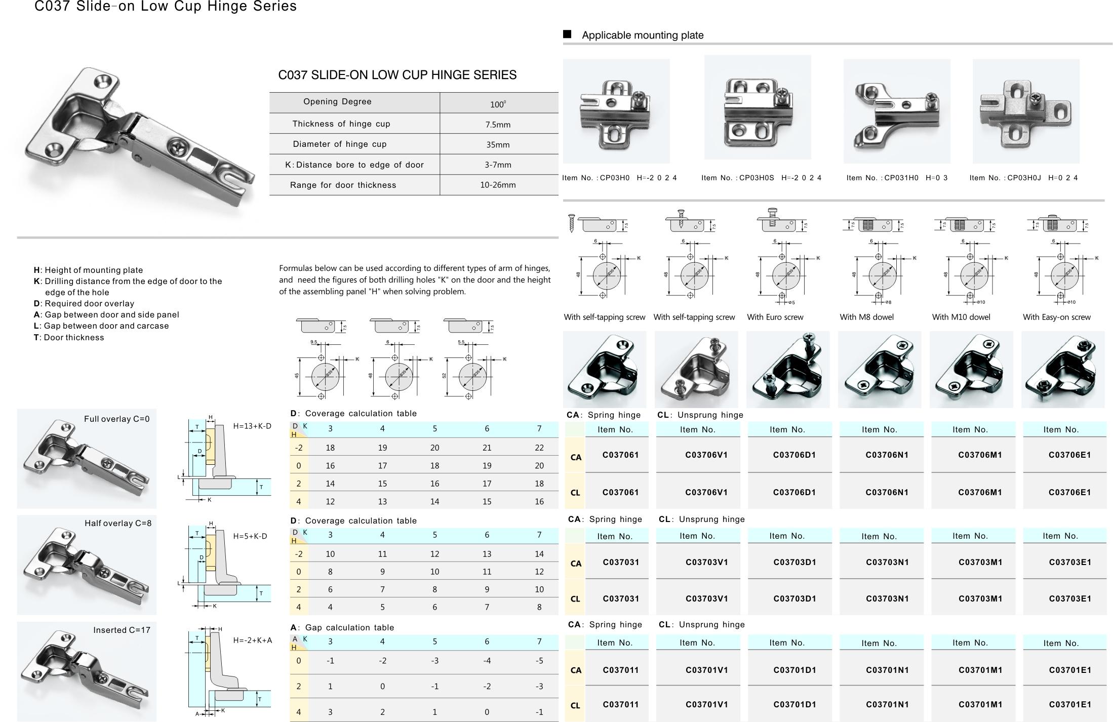 Product class:2 C03 Slide-on hinge