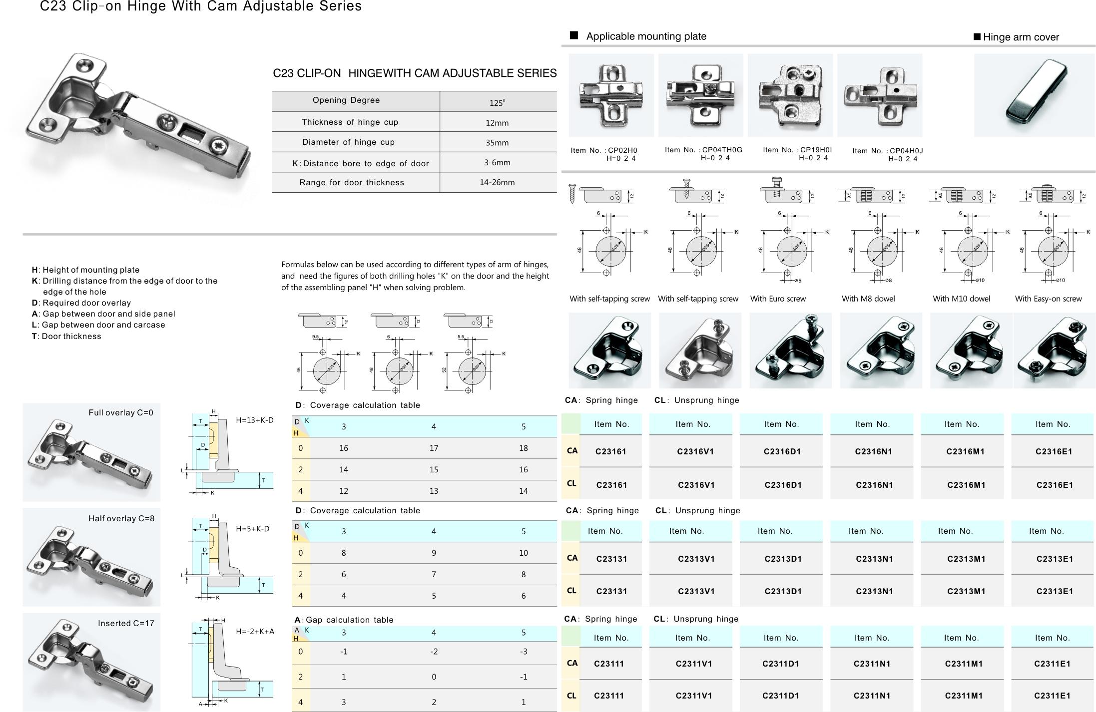Product class:3 35mm Cup clip-on hinge