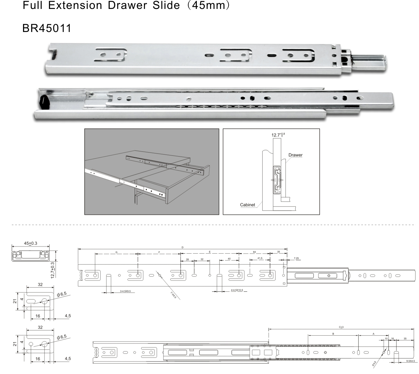 Standard drawer box runner